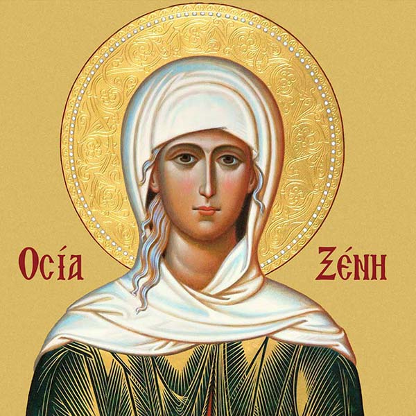 Η Οσία Ξένη καταγόταν από αριστοκρατική οικογένεια της Ρώμης και ονομαζόταν αρχικά Ευσεβία. Διακρινόταν τόσο για το γυναικείο ανάστημα και το σωματικό κάλλος της, όσο και για την πίστη της στο Χριστό. Ποθώντας την αφιέρωση στον Κύριο, αναγκάστηκε να εγκαταλείψει κρυφά την πατρίδα της, για να αποφύγει το γάμο για τον οποίο την προόριζαν οι γονείς της. Μαζί με δύο πρώην υπηρέτριες της, μετέβησαν στην Αλεξάνδρεια και από εκεί στη νήσο Κω. Τελικά κατέφυγαν στα Μύλασα της Μικράς Ασίας, όπου έζησαν ασκητικά μέχρι την οσιακή τους κοίμηση.