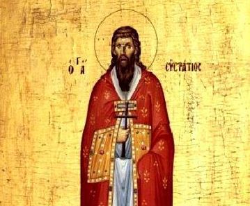 Σήμερα η Εκκλησία τιμά τη μνήμη του Μάρτυρος Πολυεύκτου και του Οσίου Ευστρατίου του Θαυματουργού, ο οποίος έζησε τον 9ο αιώνα και καταγόταν από το χωριό Βιτζινιανή της Ταρσίας. Οι γονείς του ήταν ευσεβείς και εύποροι. Όταν συμπλήρωσε το εικοστό έτος, μετέβη στον Όλυμπο της Βιθυνίας, στο Μοναστήρι του Αυγάρου, στο οποίο μόναζαν οι θείοι του. Εκεί, ακολούθησε την επίπονη και σκληρή ζωή του μοναχού. Ο Όσιος Ευστράτιος καθημερινά διακονούσε τους πάντες με πρόθυμη καρδιά και ταπεινό φρόνημα.