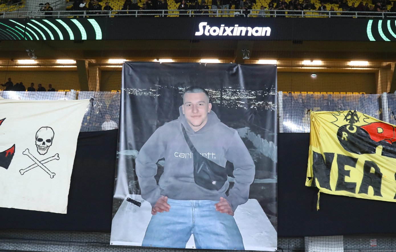 Η ΑΕΚ υποδέχεται τη Σάμροκ Ρόβερς για την 3η αγωνιστική της League Phase του Europa Conference League και στο πέταλο της Original 21 κρέμασαν πανό-φωτογραφία του Μάριου Ρουμπή που δολοφονήθηκε στη Χαλκίδα.