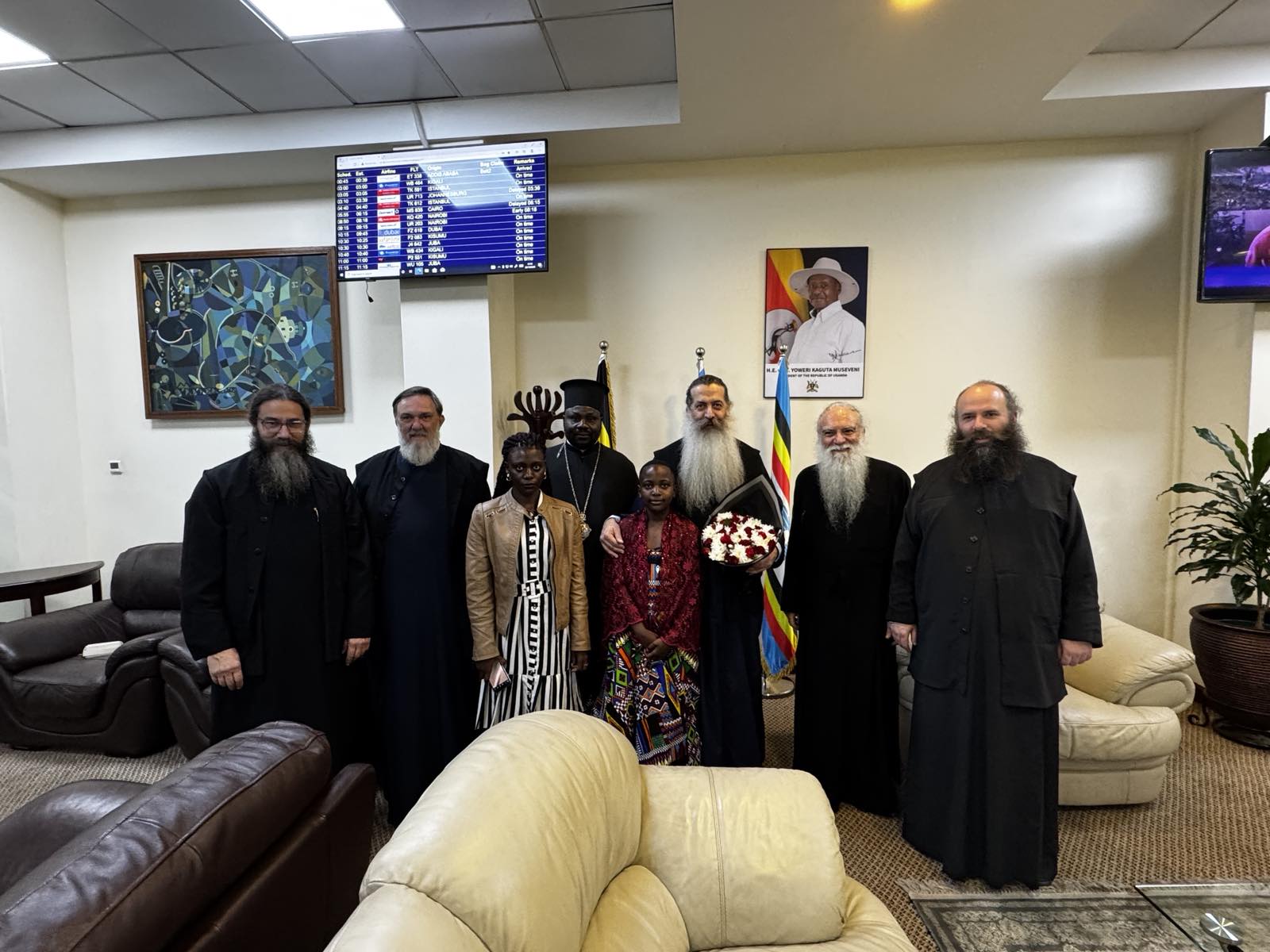 Στον κρατικό αερολιμένα της πόλεως τον Σεβασμιώτατο Μητροπολίτη κ. Συμεών τον υποδέχθηκε ο δραστήριος ακούραστος ποιμενάρχης της νεοπαγούς Επισκοπής Γκούλου, ο Θεοφιλέστατος Επίσκοπος Γκούλου και Βορείου Ουγκάντας κ. Νεκτάριος.