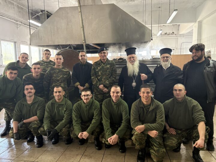 Ο Σεβασμιώτατος μίλησε στους οπλίτες αναλύοντας την ευαγγελική περικοπή του Εσπερινού της εορτής των Χριστουγέννων, τους ευχήθηκε καλά Χριστούγεννα και καλή θητεία.