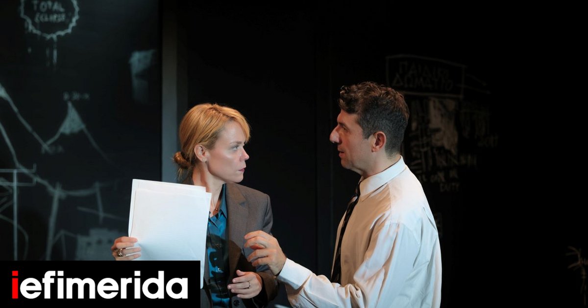 Στη σκηνή, ο Κωνσταντίνος Μπιμπής ενσαρκώνει τον γιατρό Τόμας Στόκμαν ως έναν σύγχρονο, νεαρό επιστήμονα και πατέρα βρέφους -όχι μια αφηρημένη φιγούρα ιδεολόγου, αλλά έναν άνθρωπο όπως όλοι μας.