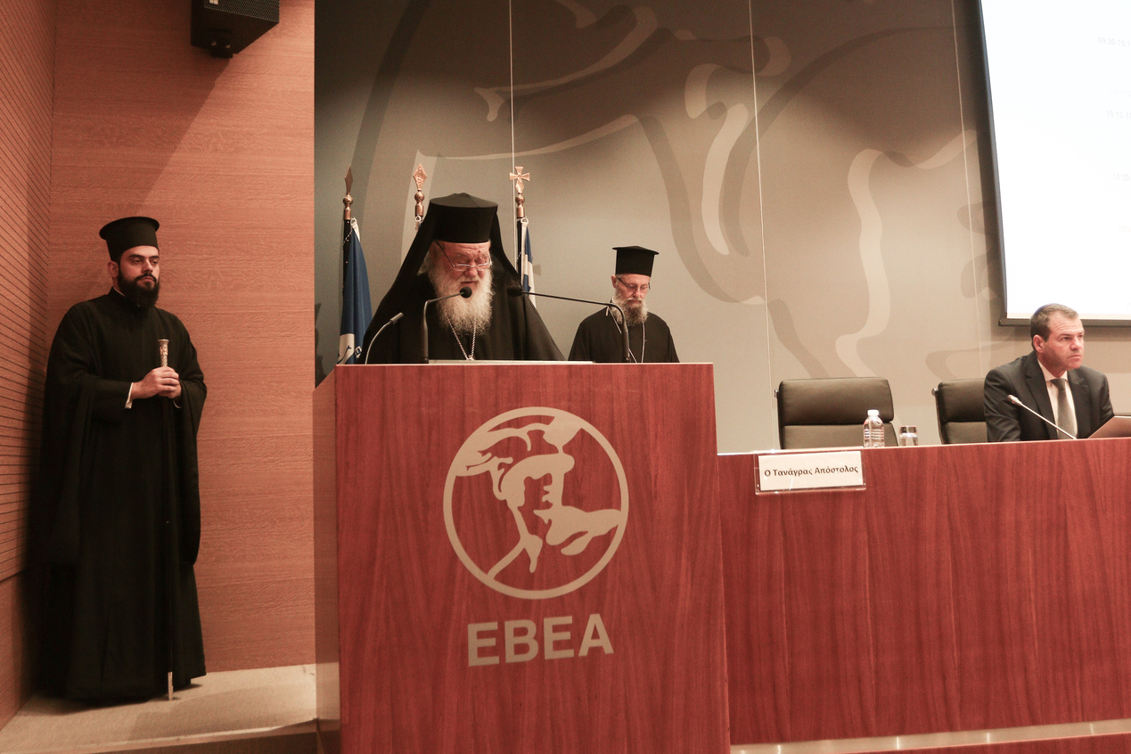 Ακολούθησε ο Χαιρετισμός του Μακαριωτάτου Αρχιεπισκόπου Αθηνών και πάσης Ελλάδος κ. Ιερωνύμου, ο οποίος αρχικά εξέφρασε τα θερμά του συγχαρητήρια στον Θεοφιλέστατο Επίσκοπο Τανάγρας κ. Απόστολο για την ουσιαστική αυτή πρωτοβουλία, που αναδεικνύει με σοβαρότητα τα κρίσιμα ζητήματα του ευρωπαϊκού δημόσιου βίου. Επίσης συνεχάρη το ΕΚΠΑ και το Υπουργείο Εξωτερικών, υπό την αιγίδα του οποίου ήταν η ημερίδα.