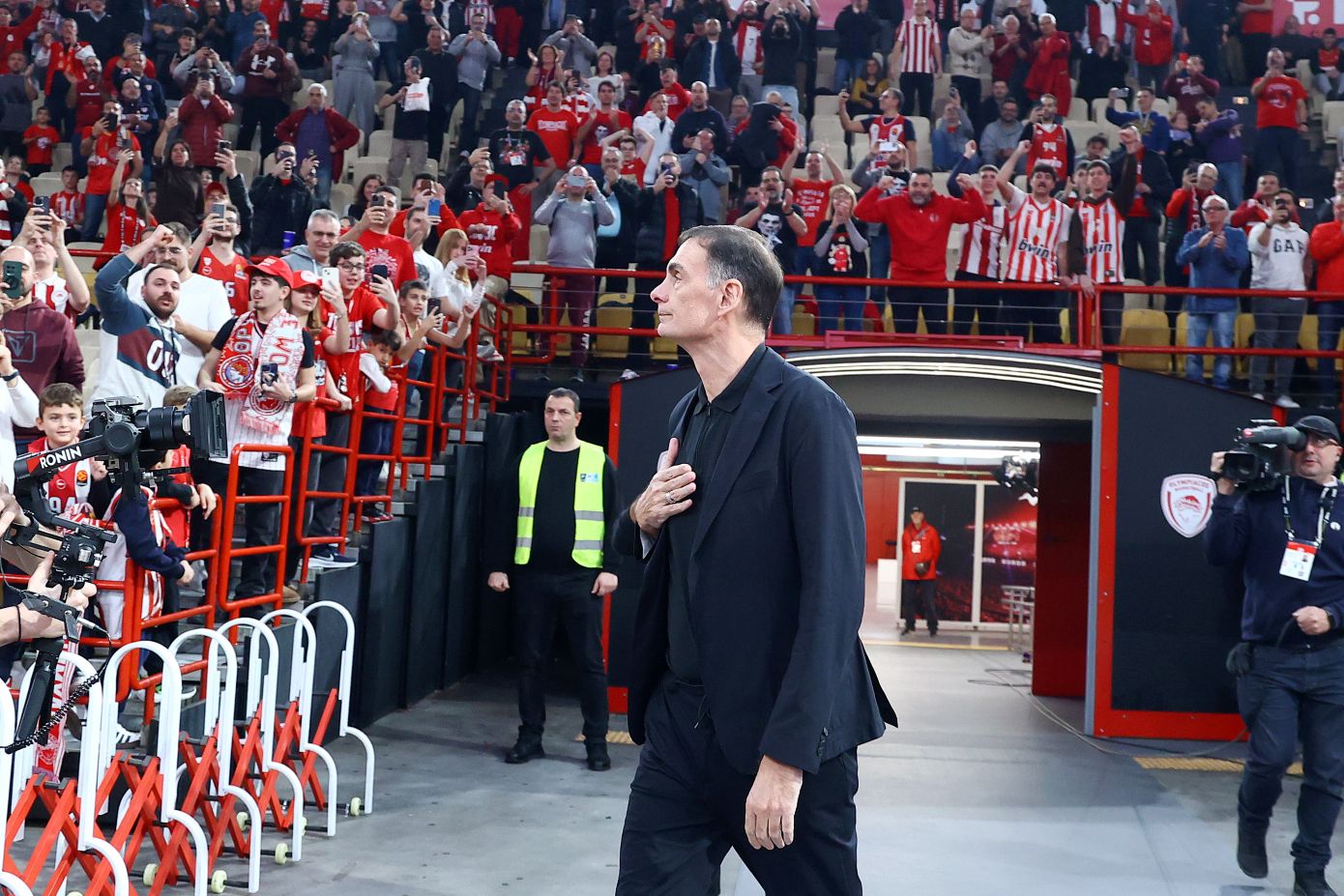 «Μπαρτζώκα, ψυχάρα, Ολυμπιακάρα»: Αποθέωση για τον κόουτς του Ολυμπιακού κατά την είσοδό του στο ΣΕΦ για το ματς με τη Βίρτους