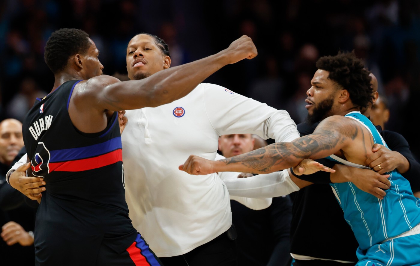 Η σπίθα άναψε μετά από ένα σκληρό φάουλ του Μούσα Ντιαμπατέ των Χόρνετς στον σέντερ των Πίστονς, Τζέιλεν Ντούρεν. Μετά το σφύριγμα των διαιτητών, οι δύο παίκτες ήρθαν σε έντονη αντιπαράθεση, ανταλλάσσοντας φωνές, με τον Ντούρεν να σηκώνει πρώτος το χέρι σε μια κίνηση που θύμιζε χαστούκι.