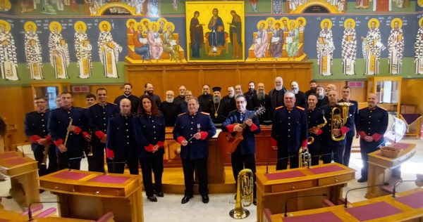 Σήμερα, Παρασκευή 19 Δεκεμβρίου, παρόντος του Θεοφιλεστάτου Αρχιγραμματέως της Ιεράς Συνόδου, έψαλε τα κάλαντα η Μουσική Μπάντα του Πυροσβεστικού Σώματος, υπό την διεύθυνση του Αρχιμουσικού–Υποπυραγού κ. Δημήτριου Κουνδουράκη.