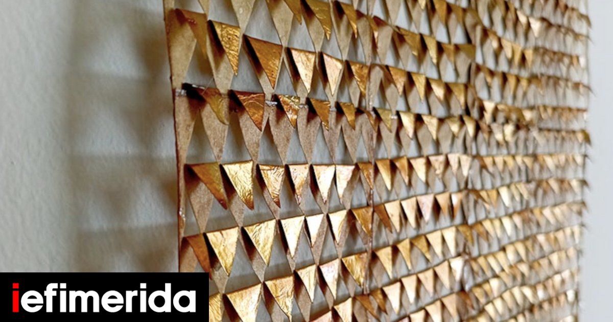 Ο καλλιτέχνης αποκαθιστά χρησιμοποιημένα, ανακτημένα υλικά, όπως χρυσόχαρτα από πακέτα τσιγάρων ή φακελάκια τσαγιού