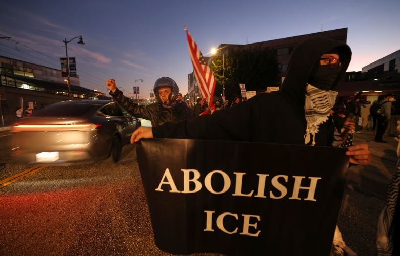 Κυριαρχούν τα συνθήματα «καταργήστε την ICE» και «καμία δικαιοσύνη, καμία ειρήνη – πάρτε την ICE από τους δρόμους μας»