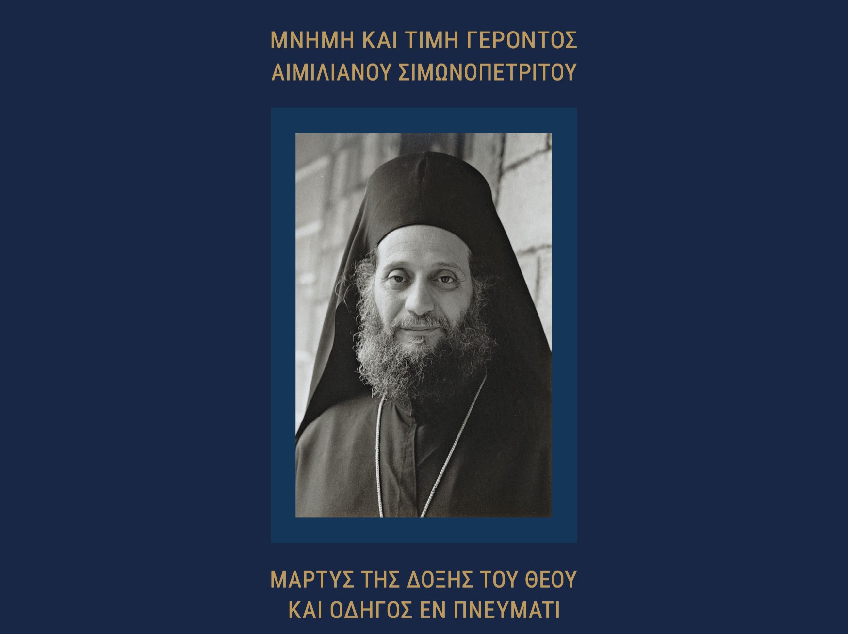 Διεθνές Θεολογικό Συμπόσιο: «ΜΝΗΜΗ ΚΑΙ ΤΙΜΗ ΓΕΡΟΝΤΟΣ ΑΙΜΙΛΙΑΝΟΥ ΣΙΜΩΝΟΠΕΤΡΙΤΟΥ: Mάρτυς της δόξης του Θεού και οδηγός εν Πνεύματι»