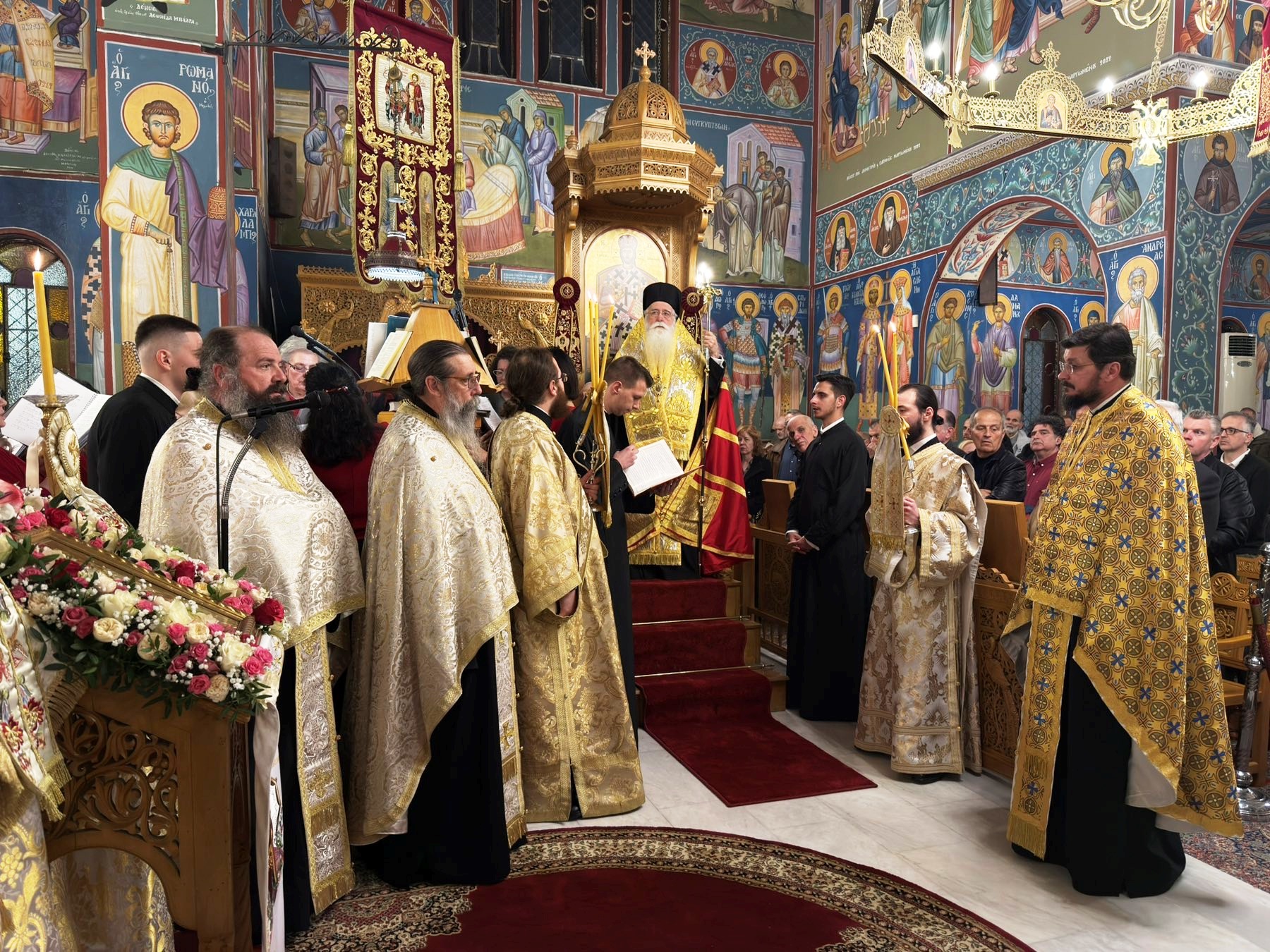 Στον πανηγυρίζοντα Ιερό Ναό Αγίων Θεοδώρων Βόλου χοροστάτησε ο Σεβ. Μητροπολίτης Δημητριάδος κ. Ιγνάτιος κατά την Α΄ Στάση των Χαιρετισμών της Υπεραγίας Θεοτόκου, παρουσία πλήθους πιστών. Στην ιερά ακολουθία τους ύμνους απέδωσε ο Γυναικείος Βυζαντινός Χορός «Αι Άδουσαι», υπό τη διεύθυνση της Μουσικολόγου κ. Σεβαστής Μαζέρα.