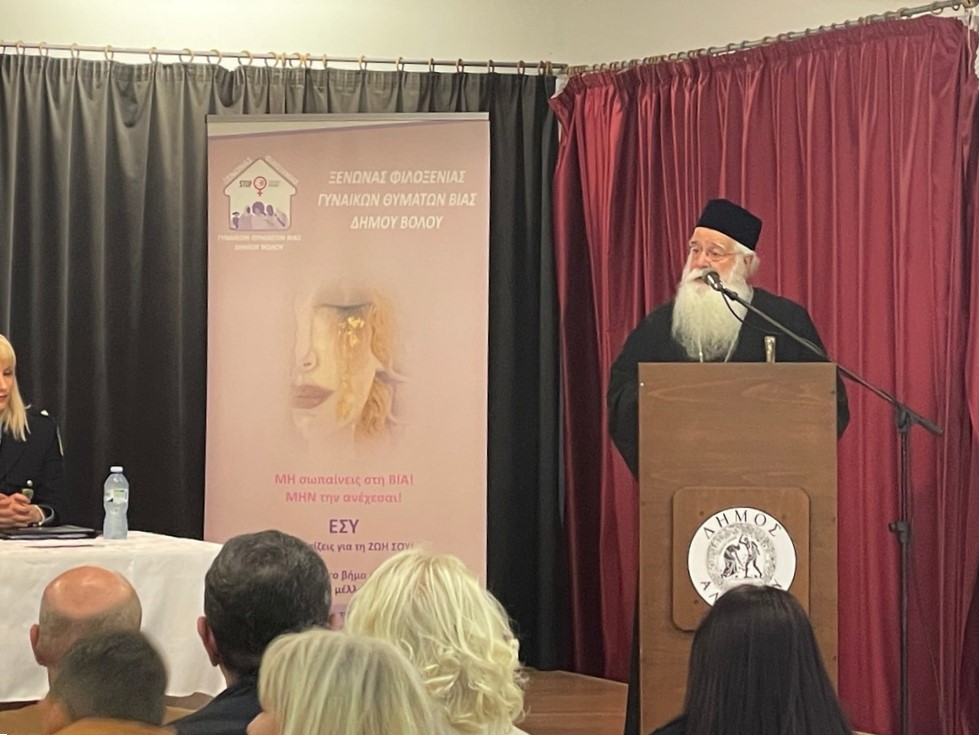 Έπειτα ο Σεβασμιώτατος κ. Ιγνάτιος, αναφέρθηκε στη σημασία των υφιστάμενων δομών υποστήριξης και της συνεργασίας όλων των φορέων, υπογραμμίζοντας ότι «η εμπειρία που υπάρχει στον ξενώνα του Βόλου είναι πολύτιμη και δείχνει πόσο σημαντικό είναι να ενώσουμε τις δυνάμεις μας, να ενημερώσουμε, να δημιουργήσουμε τις προϋποθέσεις ώστε κανείς να μην γίνεται θύμα οποιασδήποτε μορφής βίας, ιδιαίτερα ενδοοικογενειακής». Κλείνοντας τον χαιρετισμό του, ο Σεβασμιώτατος σημείωσε: «Θερμά συγχαρητήρια, ο Θεός να είναι μαζί σας και όλοι μαζί θα τα καταφέρουμε».