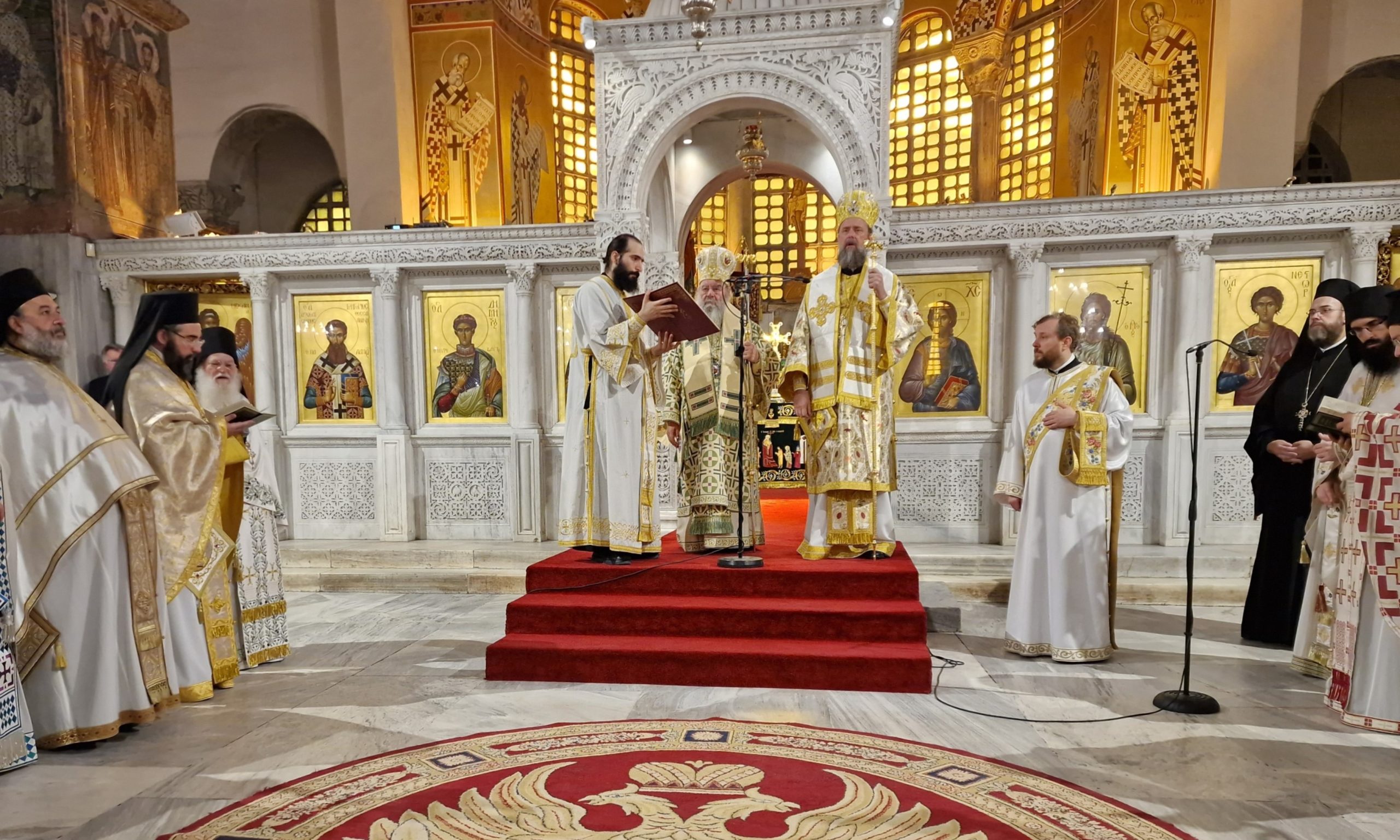 Με ιδιαίτερη λαμπρότητα και κατάνυξη τελέστηκε σήμερα, 21 Σεπτεμβρίου 2025, Κυριακή μετά την Ύψωση του Τιμίου Σταυρού, δισαρχιερατική Θεία Λειτουργία στον Ιερό Ναό Αγίου Δημητρίου, Πολιούχου Θεσσαλονίκης.