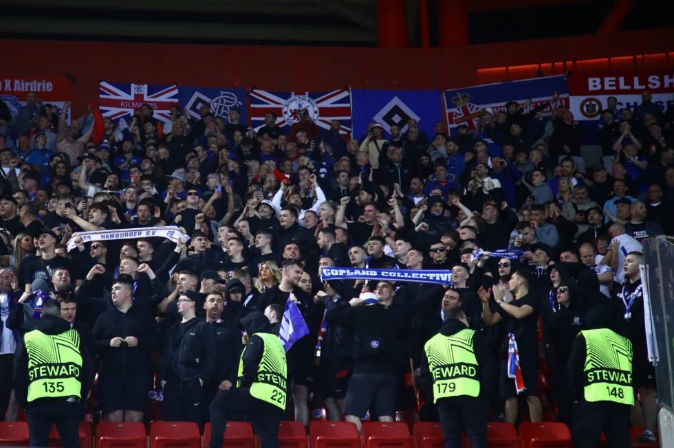 Οι περίπου 1.000 οπαδοί της Ρέιντζερς έχουν πάρει από νωρίς θέση στο πέταλο των φιλοξενούμενων στο «Γεώργιος Καραϊσκάκης».