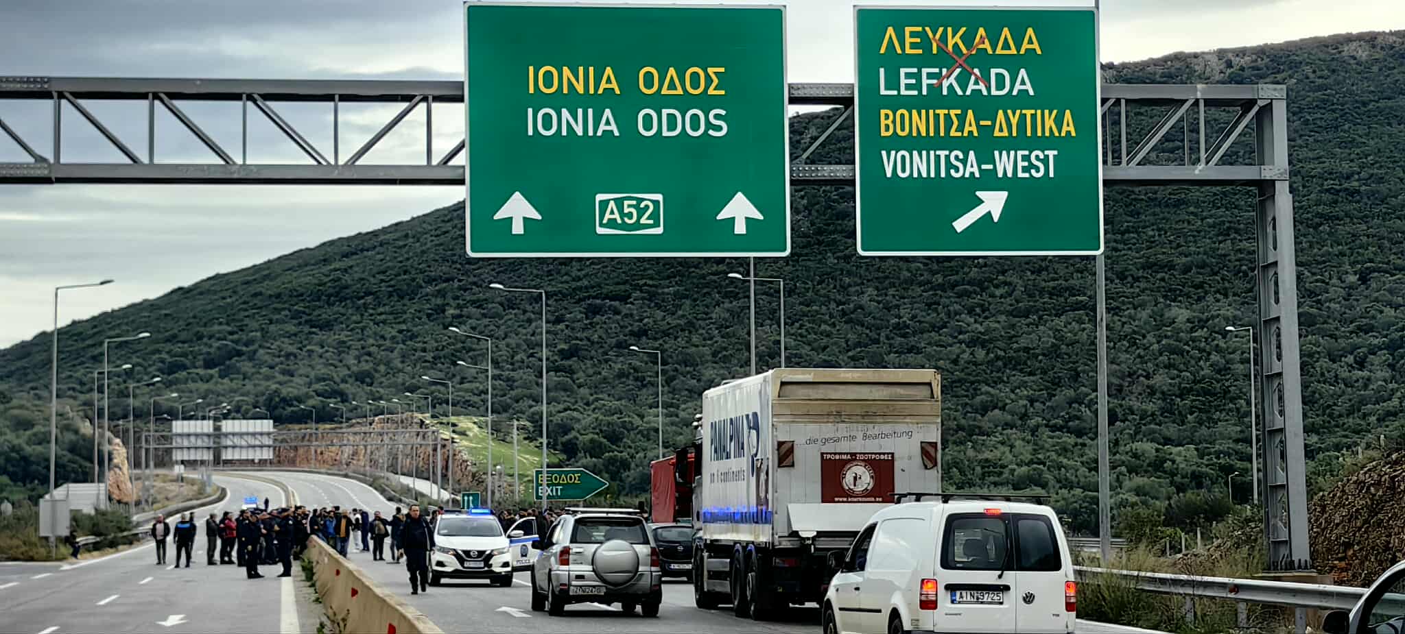 Για περίπου μία ώρα, αγρότες, από την ευρύτερη περιοχή της Βόνιτσας, απέκλεισαν την Αμβρακία οδό, στις 12.30 το μεσημέρι της Τετάρτης. Οι αγρότες είχαν δώσει ραντεβού με τα τρακτέρ τους στον κόμβο για τη Λευκάδα, όμως αστυνομικές δυνάμεις δεν τους επέτρεψαν να ανέβουν στην Αμβρακία με τα μηχανήματα, παρά μόνο πεζή.