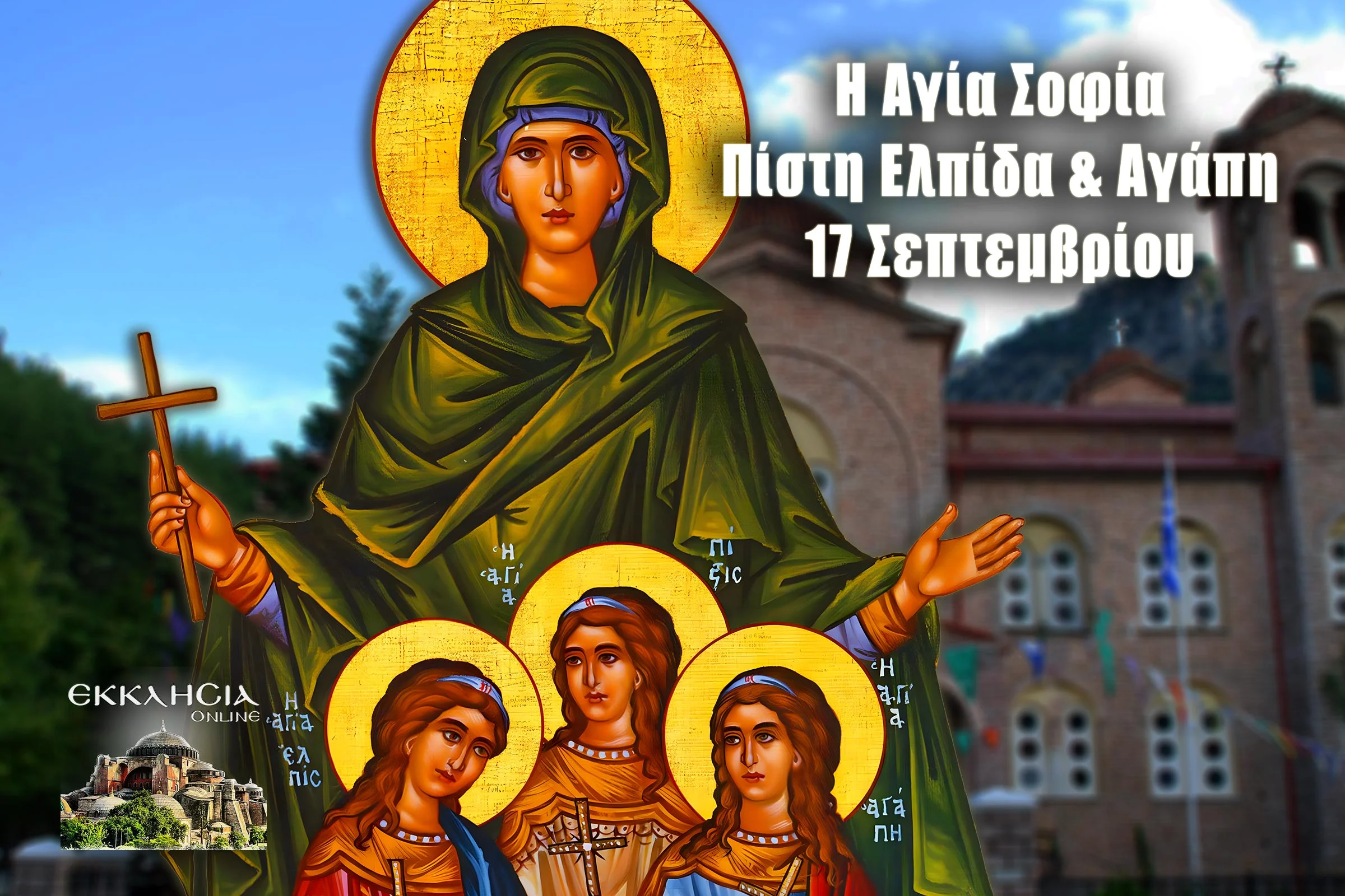 17 Σεπτεμβρίου η Εκκλησία μας τιμά τη μνήμη της Αγίας Σοφίας και των τριών θυγατέρων της Πίστης, Ελπίδας και Αγάπης των Μαρτύρων.