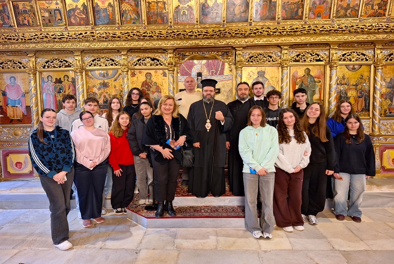 Μαθητές του 1ου Γενικού Ενιαίου Λυκείου Κομοτηνής, συνοδευόμενοι από τους Καθηγητές τους, επισκέφθηκαν το πρωί της Δευτέρας 30ης Μαρτίου 2026, τον Ιερό Μητροπολιτικό Ναό Κοιμήσεως της Θεοτόκου Κομοτηνής, όπου τους υποδέχθηκε ο Σεβασμιώτατος Μητροπολίτης Μαρωνείας και Κομοτηνής κ. Παντλεήμων.
