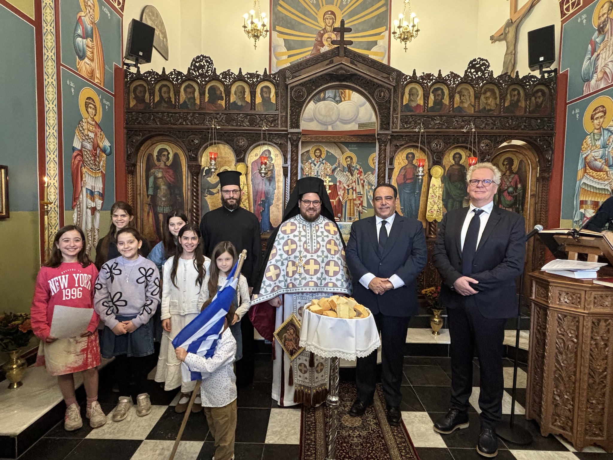 Ο νέος Επίτιμος Πρόξενος παρακολούθησε την Θεία Λειτουργία, την Δοξολογία και την εορτή των παιδιών του Κατηχητικού για την επέτειο της εθνικής εορτής της Ελλάδος της 28ης Οκτωβρίου 1940. Στο τέλος της εορτής αναγνώσθηκαν τα μηνύματα του Υφυπουργού Εξωτερικών κ. Γιάννη Λοβέρδου και της Πρέσβεως της Ελλάδος στο Βέλγιο κ. Σοφίας Γραμματά για την εθνική επέτειο από τον επικεφαλής του Προξενικού Γραφείου της Ελληνικής Πρεσβείας στις Βρυξέλλες κ. Μηνά Χερουκιά, ο οποίος παρουσίασε στο εκκλησίασμα τον νέο Επίτιμο Πρόξενο.