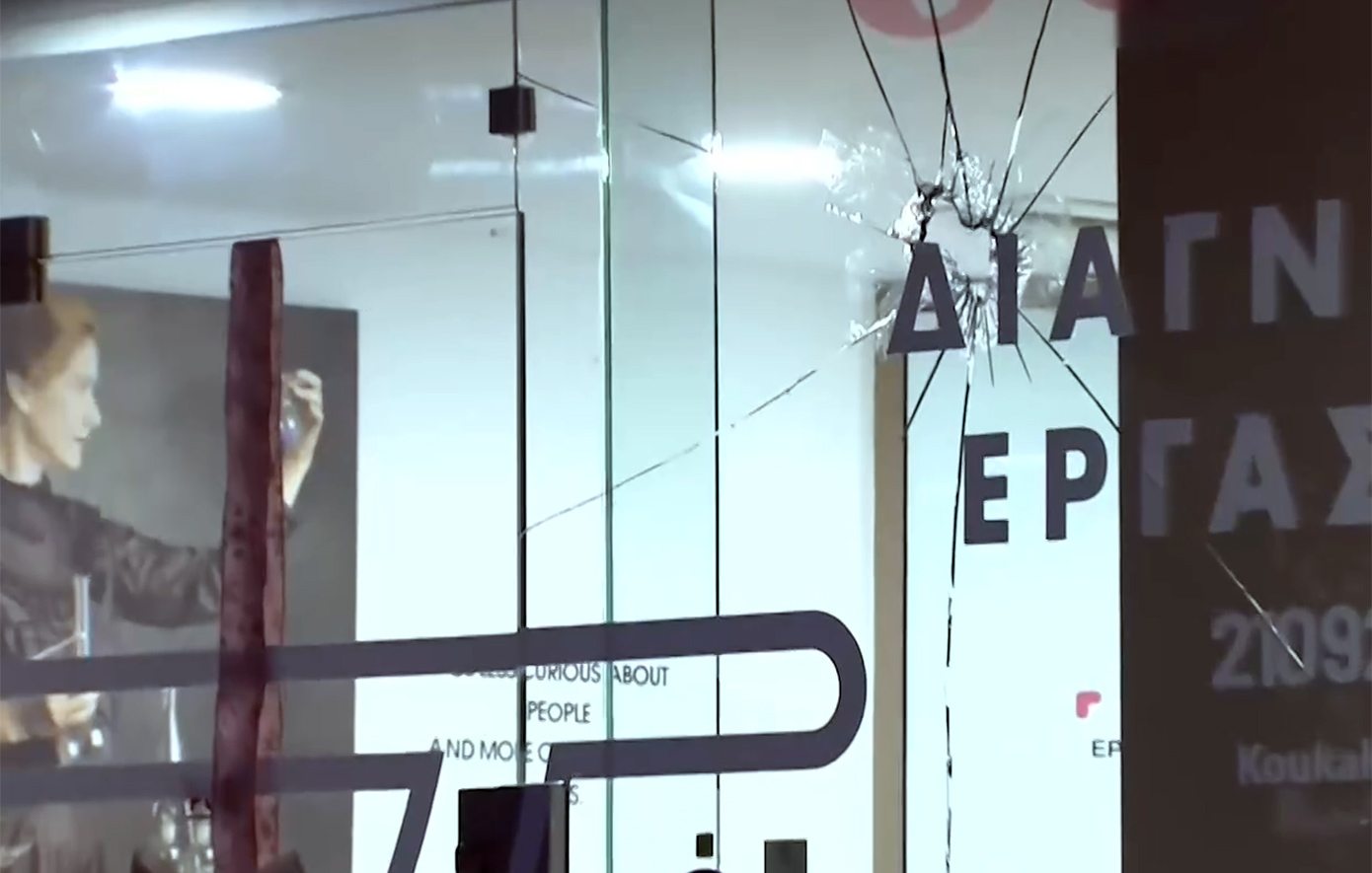 Οι δράστες, όπως μετέδωσε σε σχετικό της ρεπορτάζ η ΕΡΤ, διέφυγαν πριν φτάσουν οι αστυνομικές δυνάμεις, αφήνοντας πίσω τους σπασμένες τζαμαρίες και τρικάκια με συνθήματα για τις εκκενώσεις καταλήψεων.