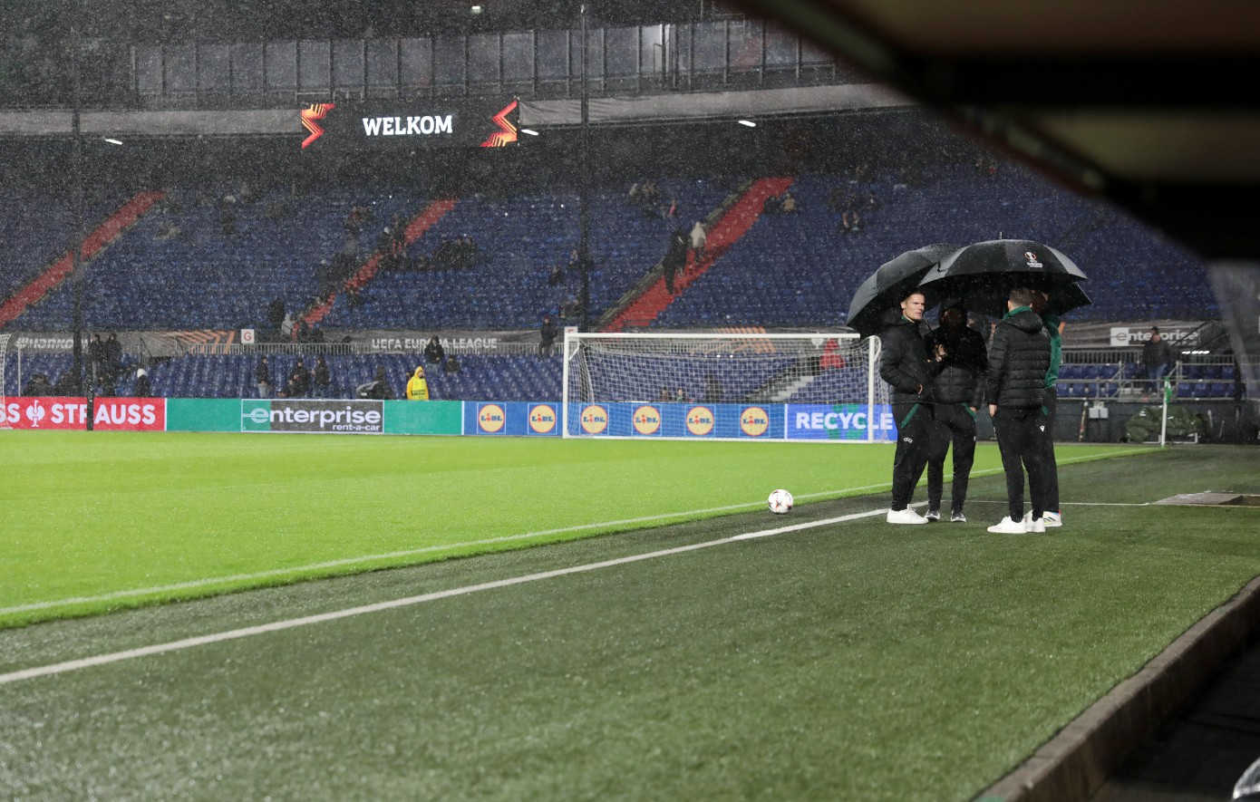 Στο Ρότερνταμ η βροχή είναι καταρρακτώδης αυτή τη στιγμή, περίπου 1,5 ώρα πριν την έναρξη του παιχνιδιού, με τη Φέγενορντ να έχει αποφασίσει, για λόγους ασφαλείας, να ανοίξει μετά τις 21:00 τις θύρες στο πάνω διάζωμα του γηπέδου.