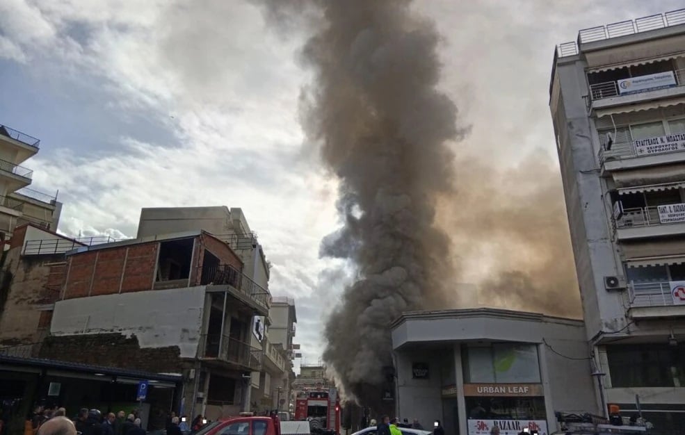 Ισχυρές δυνάμεις της Πυροσβεστικής επιχειρούν στο κέντρο του Αγρινίου, μετά την εκδήλωση φωτιάς σε ισόγειο κατάστημα, στην οδό Κύπρου.
