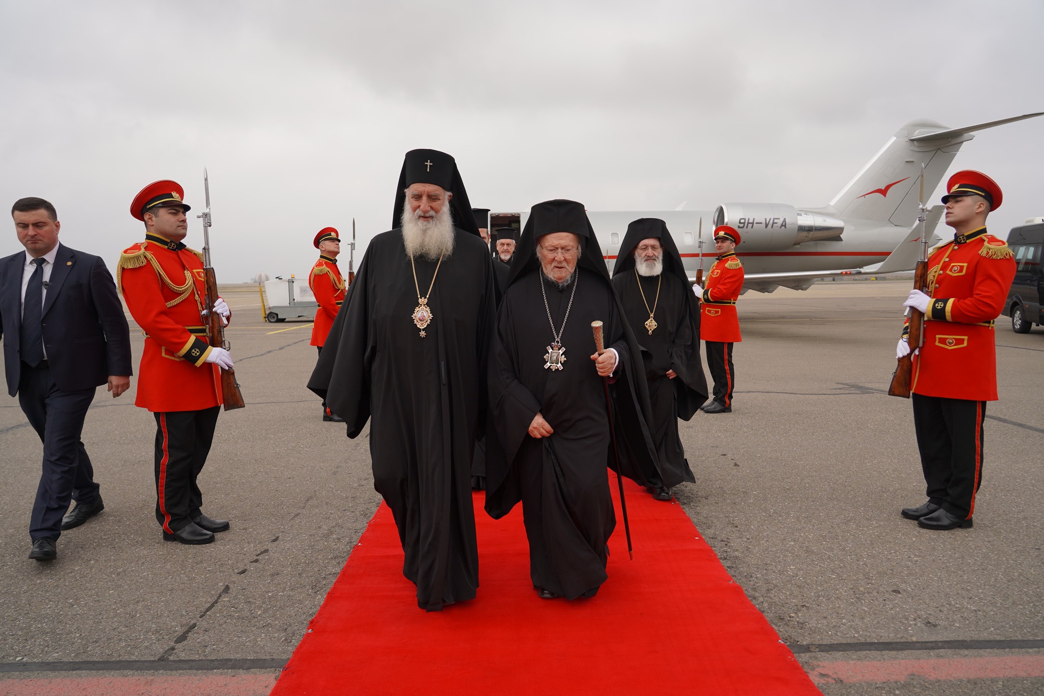 Ο Παναγιώτατος συνοδεύεται από τον Σεβ. Μητροπολίτη Γέροντα Χαλκηδόνος κ. Εμμανουήλ, τους Πανοσιολ. Μ. Εκκλησιάρχη κ. Αέτιο, Διευθυντή του Ιδιαιτέρου Πατριαρχικού Γραφείου, Μ. Αρχιδιάκονο κ. Αλέξανδρο και Αρχιμανδρίτη κ. Ηλία Jinjolava, υπεύθυνο της Γεωργιανοφώνου Κοινότητος της Πόλεως, και τους Εντιμ. κυρίους Νικόλαο-Γεώργιο Παπαχρήστου, Διευθυντή του Γραφείου Τύπου και Επικοινωνίας του Οικουμενικού Πατριαρχείου, και Παναγιώτη Γραφιαδέλη, εκ των Πατριαρχικών υπαλλήλων.