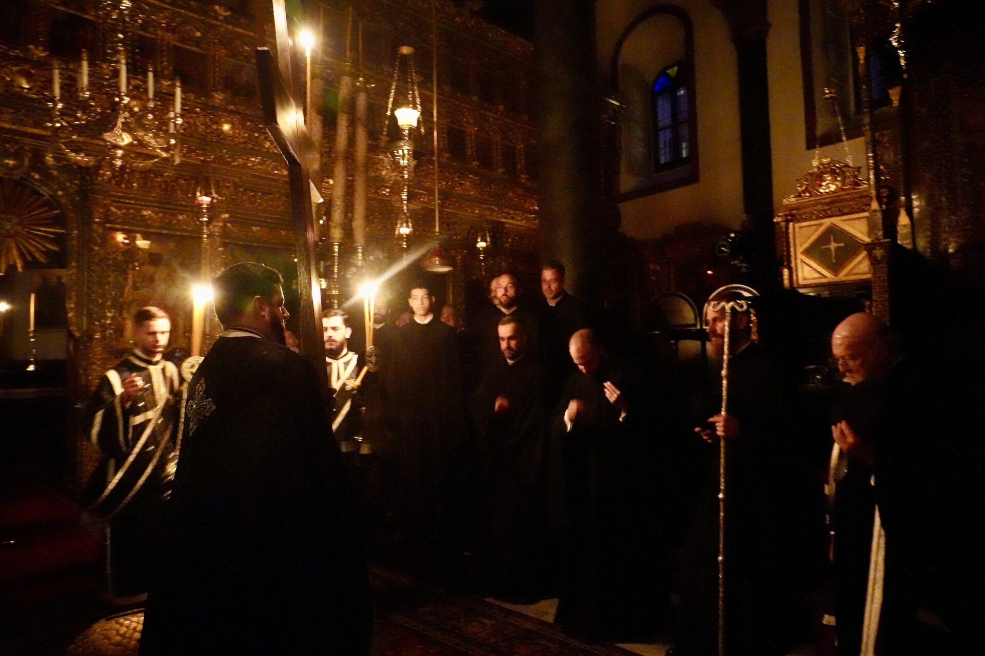 Ο Πατριαρχικός Ναός και όλο το Πατριαρχικό συγκρότημα τυλίχθηκαν στο σκοτάδι κατά την περιφορά του Εσταυρωμένου, με τη συγκίνηση όλων να κορυφώνεται.