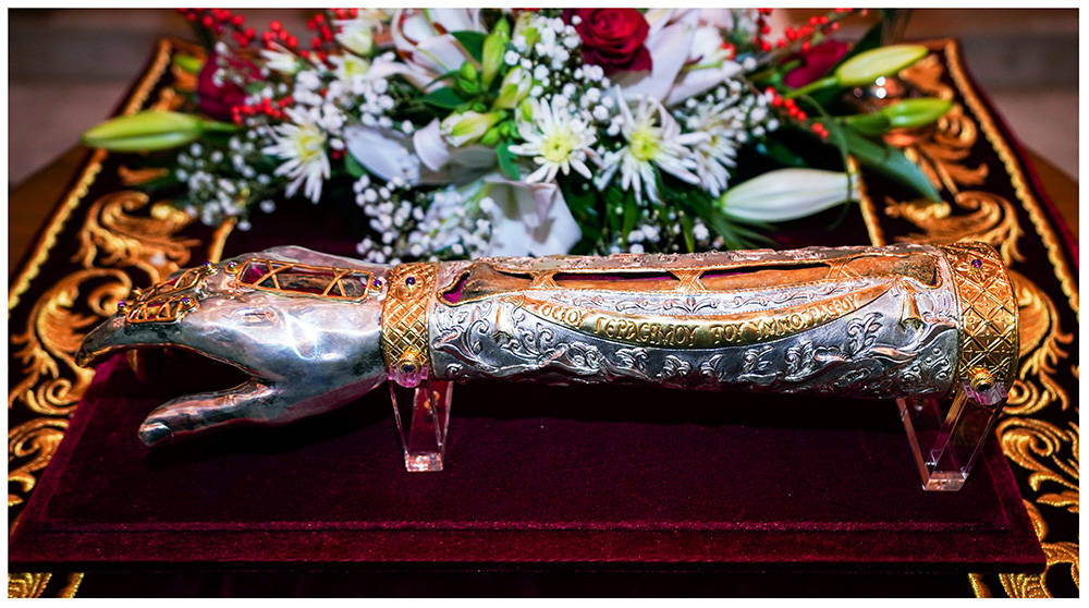 Η δεξιά χείρα του Αγίου Γερασίμου του Υμνογράφου στον Άγιο Λουκά τον Ιατρό στην Παναγία Δοβρά