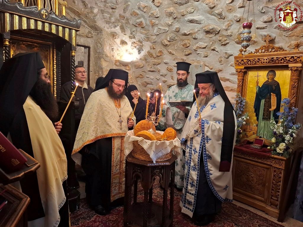Εἰς τό παρεκκλήσιον τοῦτο ἐτελέσθη Ἑσπερινός ἀφ’ ἑσπέρας καί θεία Λειτουργία τήν πρωΐαν, λειτουργοῦντος τοῦ Ἐξάρχου τῶν Ἀθηνῶν Ἀρχιμανδρίτου π. Ἱερωνύμου, συλλειτουργούντων αὐτῷ τοῦ ἐφημερίου τῆς Μονῆς Ἀρχιμανδρίτου π. Μακαρίου, τοῦ Ἀρχιμανδρίτου π. Ἀμφιλοχίου καί τοῦ διακόνου π. Εὐσταθίου, ψάλλοντος τοῦ κ. Ἀριστείδου Ντίνα, Πρωτοψάλτου τοῦ Ἱεροῦ Ναοῦ Ἁγίου Βησσαρίωνος Πύλης Τρικάλων, βοηθούντων τοῦ Ἀρχιμανδρίτου π. Δοσιθέου, τοῦ Ἱεροδιακόνου π. Προδρόμου καί τῆς μοναχῆς Εὐφημίας, τῇ φιλοξενίᾳ καί περιποιήσει τῆς ἀνακαινισάσης τόν Ἱερόν Ναόν τῆς Μονῆς ὁσιωτάτης μοναχῆς Μελάνης.