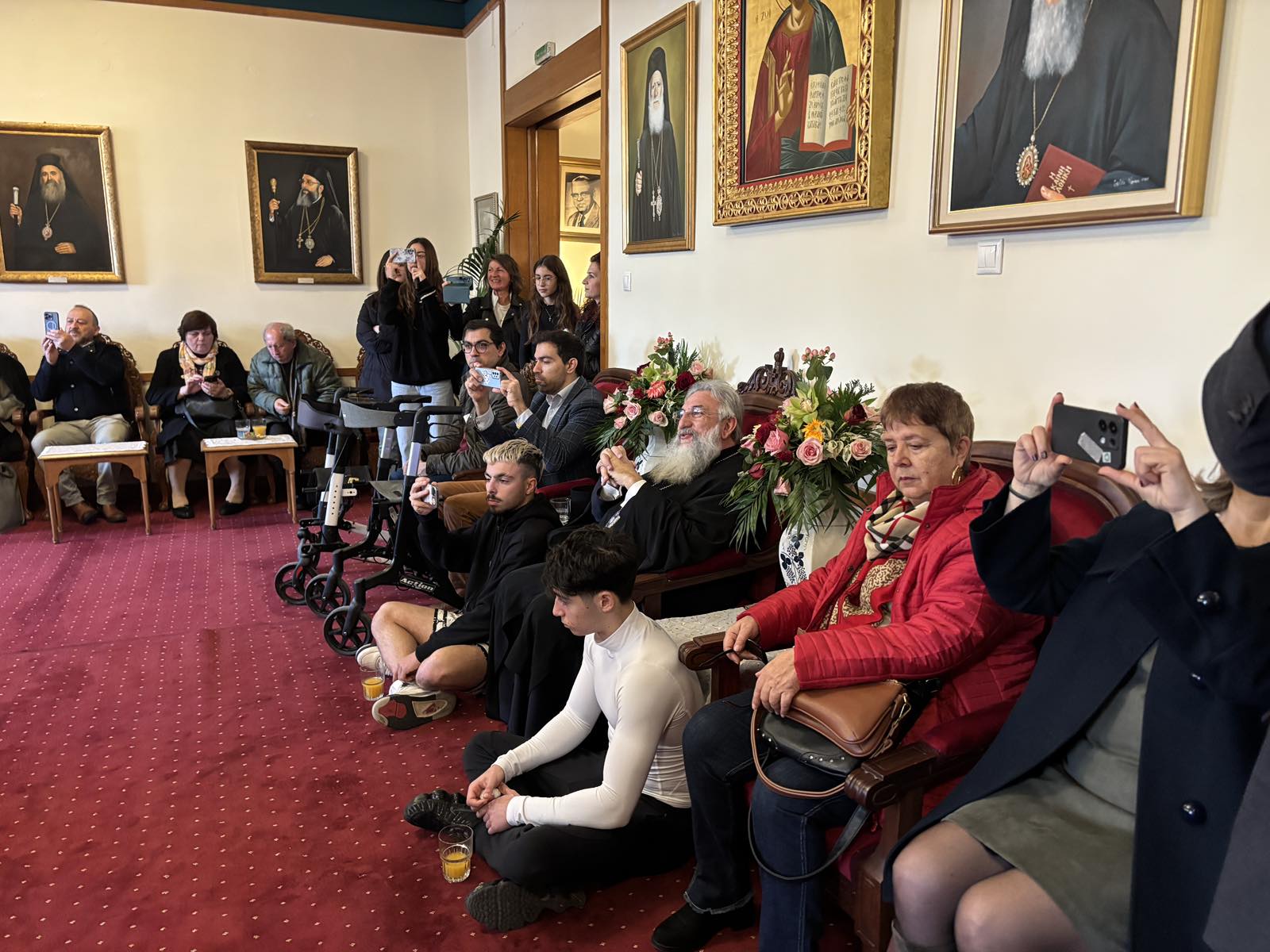 Μετά το πέρας της Θείας Λειτουργίας, ο Σεβασμιώτατος δέχθηκε τους εκπαιδευτικούς και τους μαθητές στην Αίθουσα του Θρόνου στο κτήριο της Ιεράς Αρχιεπισκοπής Κρήτης, όπου αντάλλαξε μαζί τους ευχές.