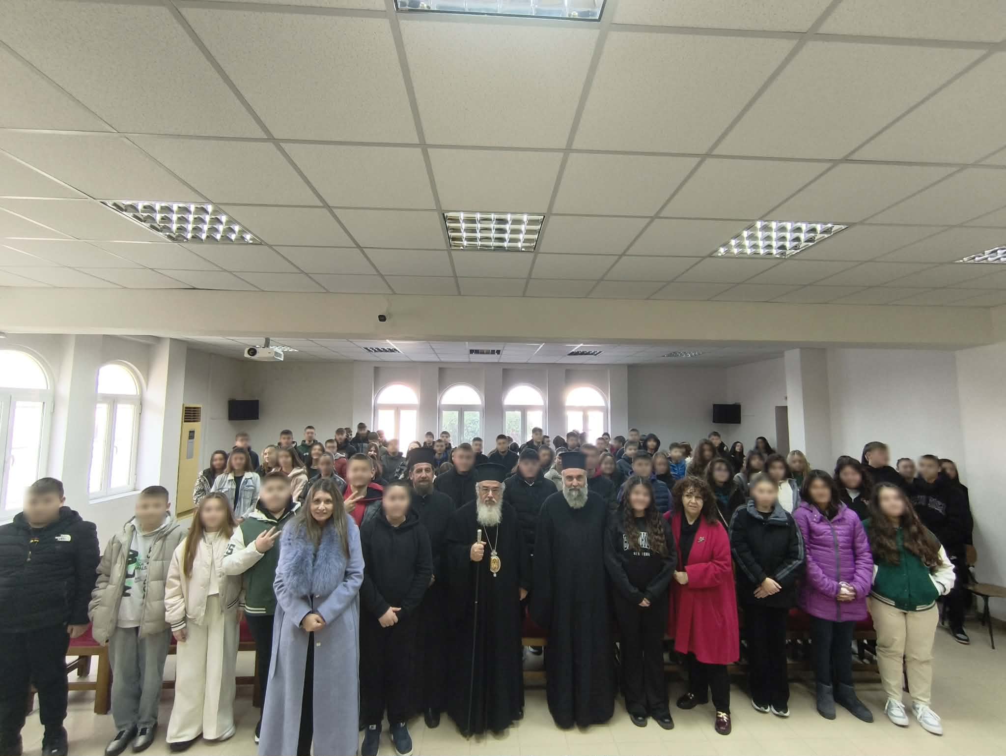 Μετά το πέρας της Θείας Λειτουργίας πραγματοποιήθηκε στο Πνευματικό Κέντρο της Ενορίας συζήτηση του Σεβασμιωτάτου με τους μαθητές και τις μαθήτριες Γυμνασίου και Λυκείου όπου τα παιδιά, με παρρησία και ειλικρίνεια υπέβαλαν ερωτήματα πνευματικού, κοινωνικού και υπαρξιακού περιεχομένου.
