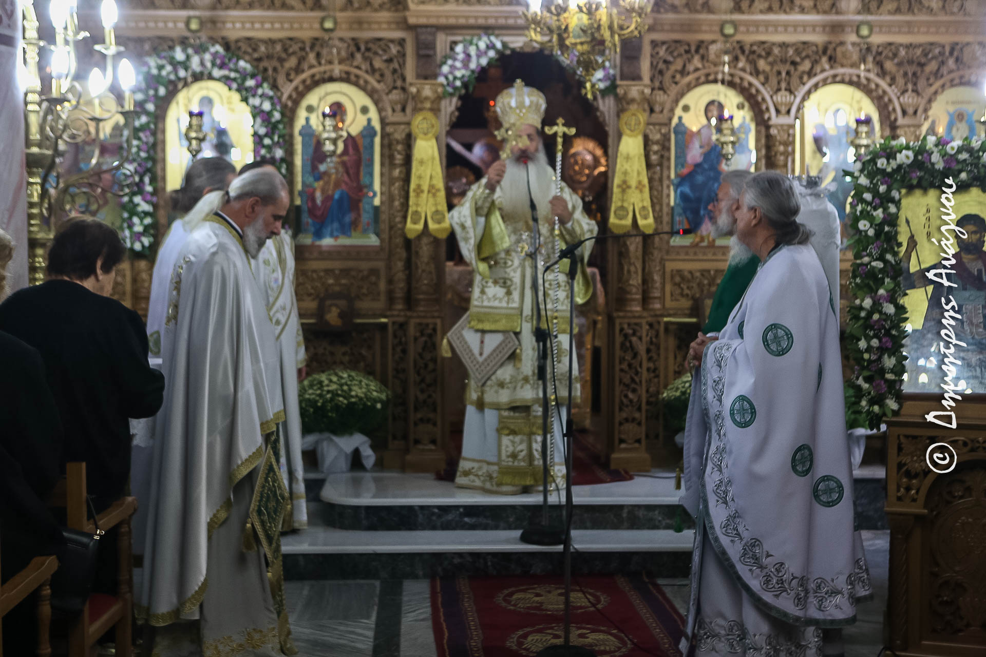 Στο κήρυγμά του στον Εσπερινό ο κ. Συμεών, μεταξύ άλλων, τόνισε ότι «αυτός ο ισχυρός και δυνατός κατά κόσμον Ευστάθιος, βρέθηκε κάποια στιγμή αδύναμος και πάμπτωχος μέσα στον κόσμο, διωκόμενος, καταδιωκόμενος, δυσκολευόμενος, όμως δεν έπαψε να είναι κατά Θεόν πλούσιος, δεν έχασε ποτέ τον αληθινό και πραγματικό πλούτο. Μπορεί να έχασε τον επίγειο πλούτο, μπορεί να έχασε την επίγεια δόξα, μπορεί να έχασε την επίγεια εξουσία αλλά έχοντας ιώβεια υπομονή, έμεινε πλούσιος σε δωρεές του Αγίου Πνεύματος, έμεινε πλούσιος σε χαρίσματα αγιοπνευματικά, έμεινε πλούσιος στην πίστη, έμεινε πλούσιος κυρίως στην ομολογία και αξιώθηκε και ο ίδιος και η οικογένειά του να μαρτυρήσουν για την αγάπη του Χριστού, να ομολογήσουν Ιησούν Χριστόν Εσταυρωμένον και να αποτελούν καύχημα για όλους μας.