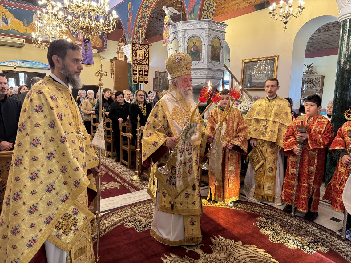 Την κυριώνυμο ημέρα ο Σεβασμιώτατος Ποιμενάρχης κ. Χρυσόστομος χοροστάτησε στην ακολουθία του Όρθρου και τέλεσε την Θεία Λειτουργία πλαισιωμένος υπό του Πρωτοσυγκέλλου της Μητροπόλεως π. Χρυσοστόμου Μπένου, του Εφημερίου του Ναού Αρχιμανδρίτου π. Παλλάδιου Ζαχαρούδη και του Αρχιδιακόνου της Μητροπόλεως π. Αθανασίου.