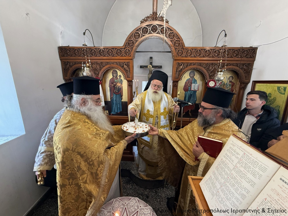 Το Σάββατο 28 Φεβρουαρίου 2026, ανάμνηση του δια κολλύβων θαύματος του Αγίου Μεγαλομάρτυρος Θεοδώρου του Τήρωνος, ο Σεβασμιώτατος Μητροπολίτης Ιεραπύτνης και Σητείας κ. Κύριλλος χοροστάτησε κατά την ακολουθία του Όρθρου και στη συνέχεια ιερούργησε στον πανηγυρίζοντα Ιερό Κοιμητηριακό Ναό Αγίων Θεοδώρων πόλεως Ιεράπετρας.