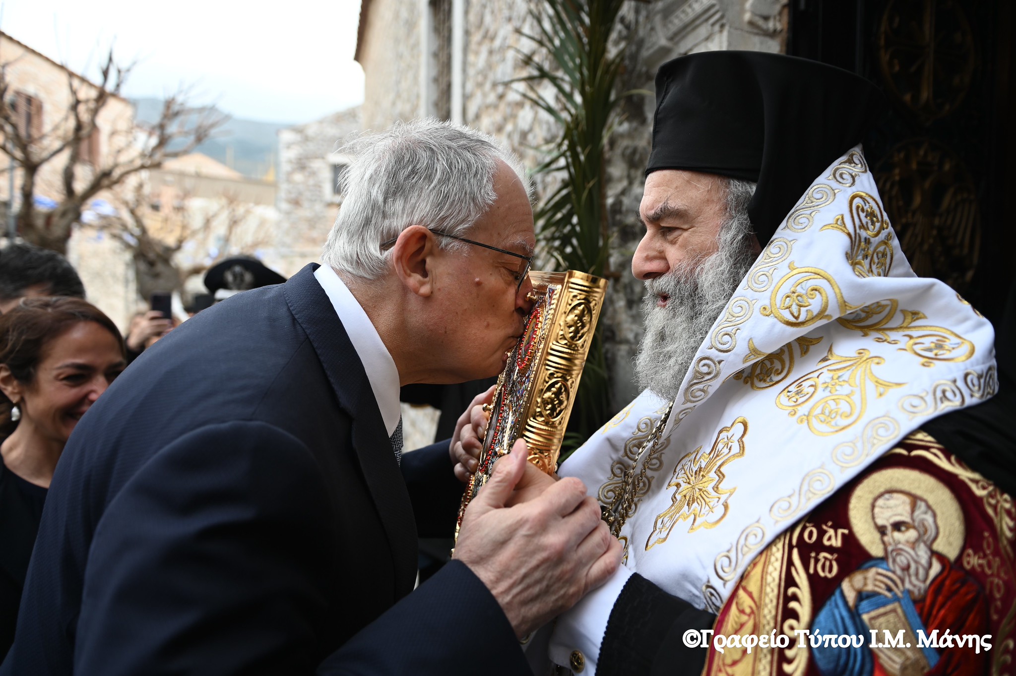 Ειδικότερα, την επίσημη Δοξολογία που τελέστηκε στον Ιερό Ναό Ταξιαρχών (Αρεόπολης), παρουσία του Προέδρου της Ελληνικής Δημοκρατίας κ. Κωνσταντίνου Τασούλα, τέλεσε ο Σεβασμιώτατος Μητροπολίτης Μάνης κ. Χρυσόστομος Γ’, πλαισιούμενος από ιερείς.