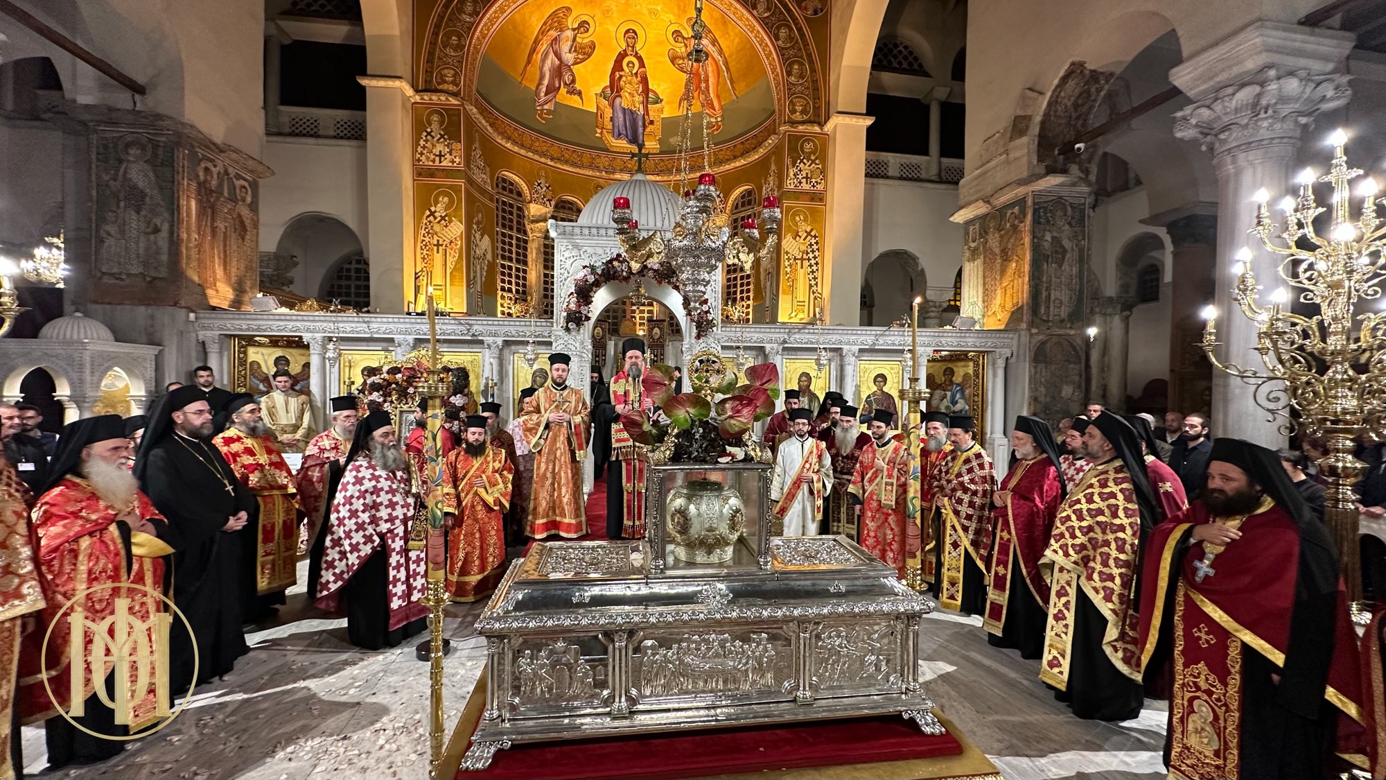 Προ της απολύσεως, ο Ποιμενάρχης, εμφανώς συγκινημένος, κατά το κήρυγμά του, αναφέρθηκε στην μεγάλη αγάπη του Αγίου μας για τον Χριστό, ο οποίος δεν δείλιασε μπροστά στα φρικτά μαρτύρια που υπέστη από τους δημίους του για να μαρτυρήσει για τον ίδιο το Χριστό.