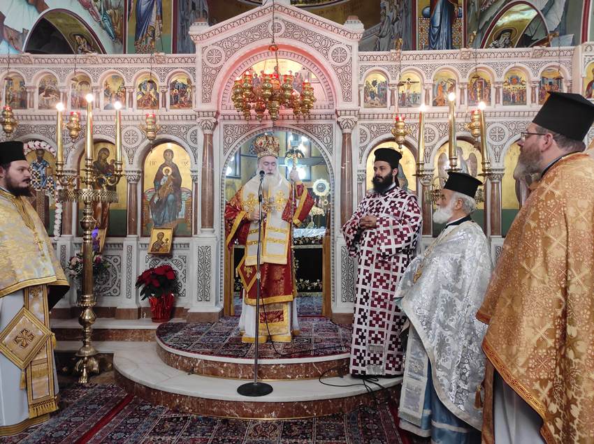 Τον σεπτό Ποιμενάρχη πλαισίωσαν ο Πανοσ. Αρχιμ. π. Δαμασκηνός Γεννηματάς, Εφημέριος του Καθεδρικού Ι. Ναού Αποστόλου Παύλου Κορίνθου, ο Αιδεσ. Πρωτ/ρος π. Πέτρος Καγιούλης, Προϊστάμενος του Ι. Ναού Τιμίου Προδρόμου Λουτρακίου, οι Εφημέριοι του Ι. Ναού Αιδεσ. Πρωτ/ρος π. Θεόδωρος Κεραμίδας και π. Αναστάσιος Ριζόγιαννης και οι Διάκονοί του π. Χρήστος Χίλιας, π. Σωτήριος Κουτσούρης και π. Άγγελος Σαλάτας.