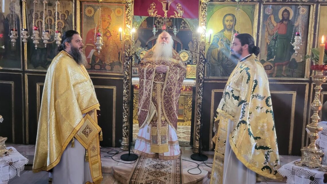 Τον πλαισίωσαν ο Πρωτοσύγκελλος της Ιεράς Μητροπόλεως Παν. Αρχιμ. π. Δωρόθεος Ζέρβας και ο Παν. Αρχιμ. π. Νικόδημος Κωτινούδης, άμεσοι συνεργάτες του Μητροπολίτου μας, αποσταλλέντες να τον εκπροσωπήσουν στην Πανηγυρική αυτή Εόρτιο Σύναξη. Μαζί τους και ο Παν. Αρχιμ. π. Δημήτριος Αργυριάδης.