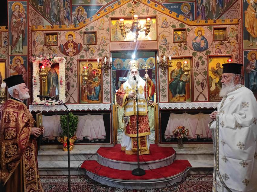 Το πρωί της επομένης, ο σεπτός Ποιμενάρχης τέλεσε τον Πανηγυρικό Όρθρο και την Θεία Λειτουργία στον πανηγυρίζοντα Ιερό Ναό. Μετά του Σεβασμιωτάτου λειτούργησαν ο Πανοσ. Αρχιμανδρίτης π. Δαμασκηνός Γεννηματάς, Εφημέριος του Καθεδρικού Ιερού Ναού Αποστόλου Παύλου Κορίνθου, οι Αιδεσ. Πρεσβύτεροι π. Νικόλαος Καψαρίδης και π. Αλέξανδρος Καρπερός, Εφημέριοι του Ιερού Ναού της Αγίας Αναστασίας και οι Διάκονοι π. Χρήστος Χίλιας, π. Σωτήριος Κουτσούρης και π. Άγγελος Σαλάτας. Στη Θεία Λειτουργία παρέστησαν ο Δήμαρχος Κορινθίων κ. Νικόλαος Σταυρέλης και ο Περιφερειακός Σύμβουλος κ. Γεώργιος Πετρίτσης.