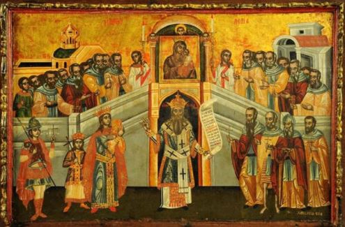 Η αναστήλωση των εικόνων δίνει την ευκαιρία στην Εκκλησία να τονίσει την πιστότητά της στην αποστολική παράδοση, δηλαδή στην μία και μοναδική πίστη που παραδόθηκε μια για πάντα από τον Θεό στους Χριστιανούς. «Τη άπαξ παραδοθείση πίστει τοις αγίοις». Στο Συνοδικό της Ορθοδοξίας, μια συνοπτική έκθεση της Ορθόδοξης πίστης, διακηρύσσεται με εντόνως εμφαντικό τρόπο: «Αύτη η πίστις των Αποστόλων, αύτη η πίστις των Πατέρων, αύτη η πίστις των Ορθοδόξων, αύτη η πίστις την Οικουμένην εστήριξε»(Κυριακή της Ορθοδοξίας).