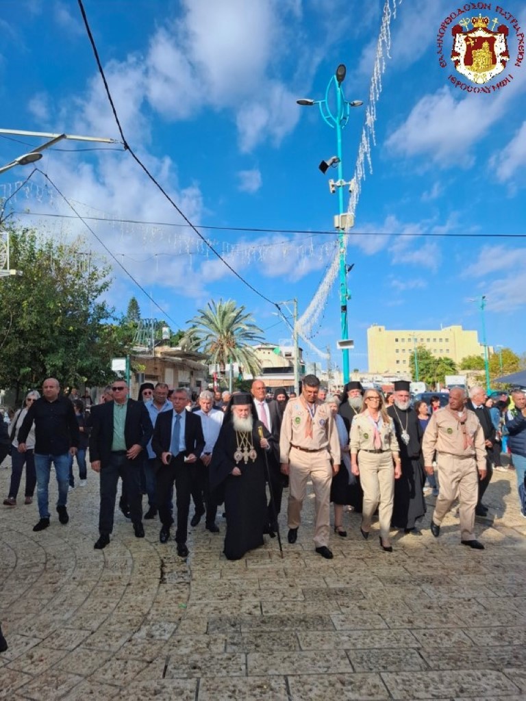 Στη συνέχεια, κατά την εόρτια τράπεζα την οποία παρέθεσαν το Κοινοτικό Συμβούλιο και η Λέσχη Προσκόπων, στην ομιλία του ο Μακαριώτατος αναφέρθηκε στην ανεκτίμητη παρουσία και προσφορά του Πατριαρχείου Ιεροσολύμων στην Αγία Γη, το οποίο, όπως υπογράμμισε: “διεφύλαξε καὶ ἐξακολουθεῖ νὰ διαφυλάττῃ τὴν Χριστιανικὴν πίστιν καὶ κουλτούραν ζωντανὴν διὰ μέσου τῶν αἰώνων”.