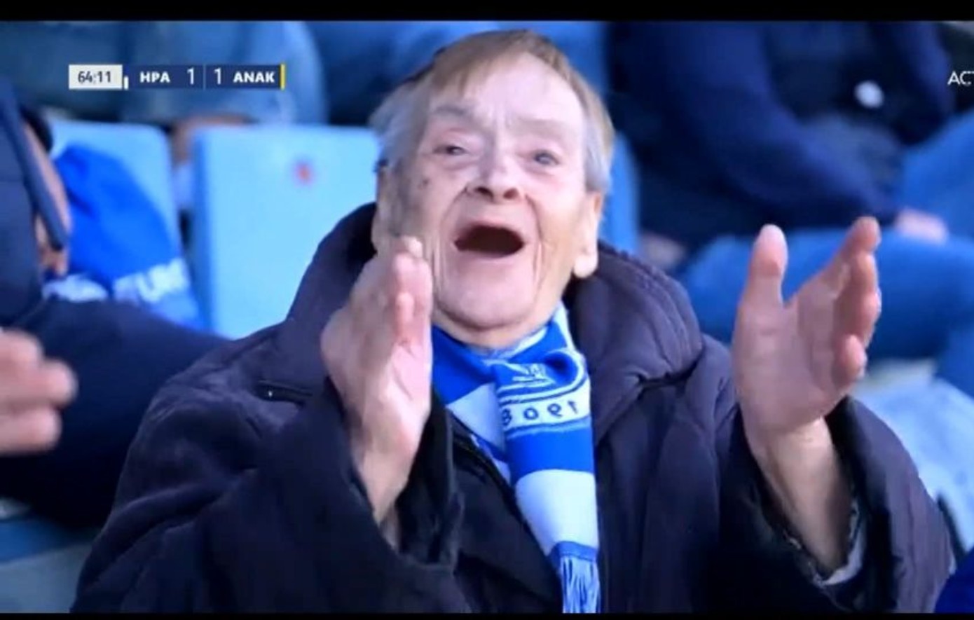 Με το κασκόλ στον λαιμό, η γνωστή οπαδός του Ηρακλή φώναζε τα συνθήματα και χαιρόταν με την ψυχή τους για αυτό που έβλεπε, καθώς περίμενε εννιά χρόνια για να πανηγυρίσει την επιστροφή της αγαπημένης της ομάδας στη Stoiximan Super League.