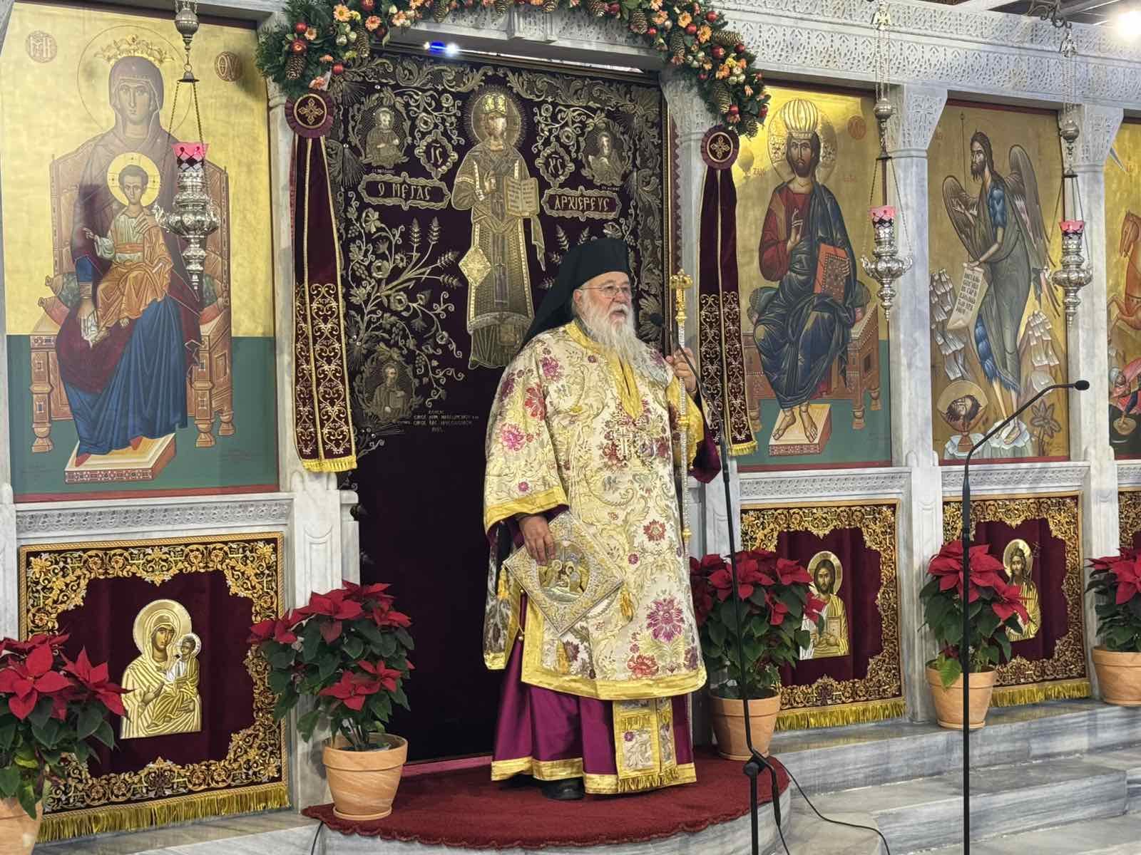 Κατά την ομιλία του, ο Σεβασμιώτατος έλαβε αφορμή από το ευαγγελικό ανάγνωσμα της Κυριακής και συγκεκριμένα από τα σημεία που λέγουν ότι «᾽Αναχωρησάντων τῶν μάγων», αφού «ἐθυμώθη λίαν» ο Ηρώδης, παρουσιάσθηκε Άγγελος Κυρίου στον Ιωσήφ και τού έδωσε την εντολήν του Θεού να παραλάβει τη Μαρία και το παιδίον και να αναχωρήσουν εις την Αίγυπτον. Έτσι, ο Κύριός μας αναδεικνύεται μετανάστης και δραπέτης εκ των πατρώων εις γην αλλοτρίαν. Αυτό συνέβη διότι ο Κύριός μας φοβήθηκε την απειλή του Ηρώδη; Όχι, αλλά ο σκοπός του ιδίου του Θεού ήταν πρωτίστως να εκπληρωθεί το έργον της αναγεννήσεως δια του εκουσίου πάθους και της Αναστάσεώς Του, προκειμένου να εκπληρωθεί ολόκληρο το σωτηριώδες έργον Του. Φεύγει δε στη γη της Αιγύπτου, εκεί όπου οι πρόγονοί του, ο λαός του Ισραήλ, επιχειρήθηκε να εγκλωβιστεί και να υποδουλωθεί στους Αιγυπτίους προκειμένου να επηρεαστούν και να εγκαταλείψουν τον αληθινόν Θεόν. Τώρα λοιπόν το σχέδιον του Θεού αποστέλλει τον Υιόν και Λόγον Του, ο οποίος ενηθρώπισε προκειμένου, πνευματικώ τω τρόπω, να ευαγγελίσει αυτόν τον λαόν τον ειδωλολατρικόν στον ένα και μοναδικόν Θεόν.