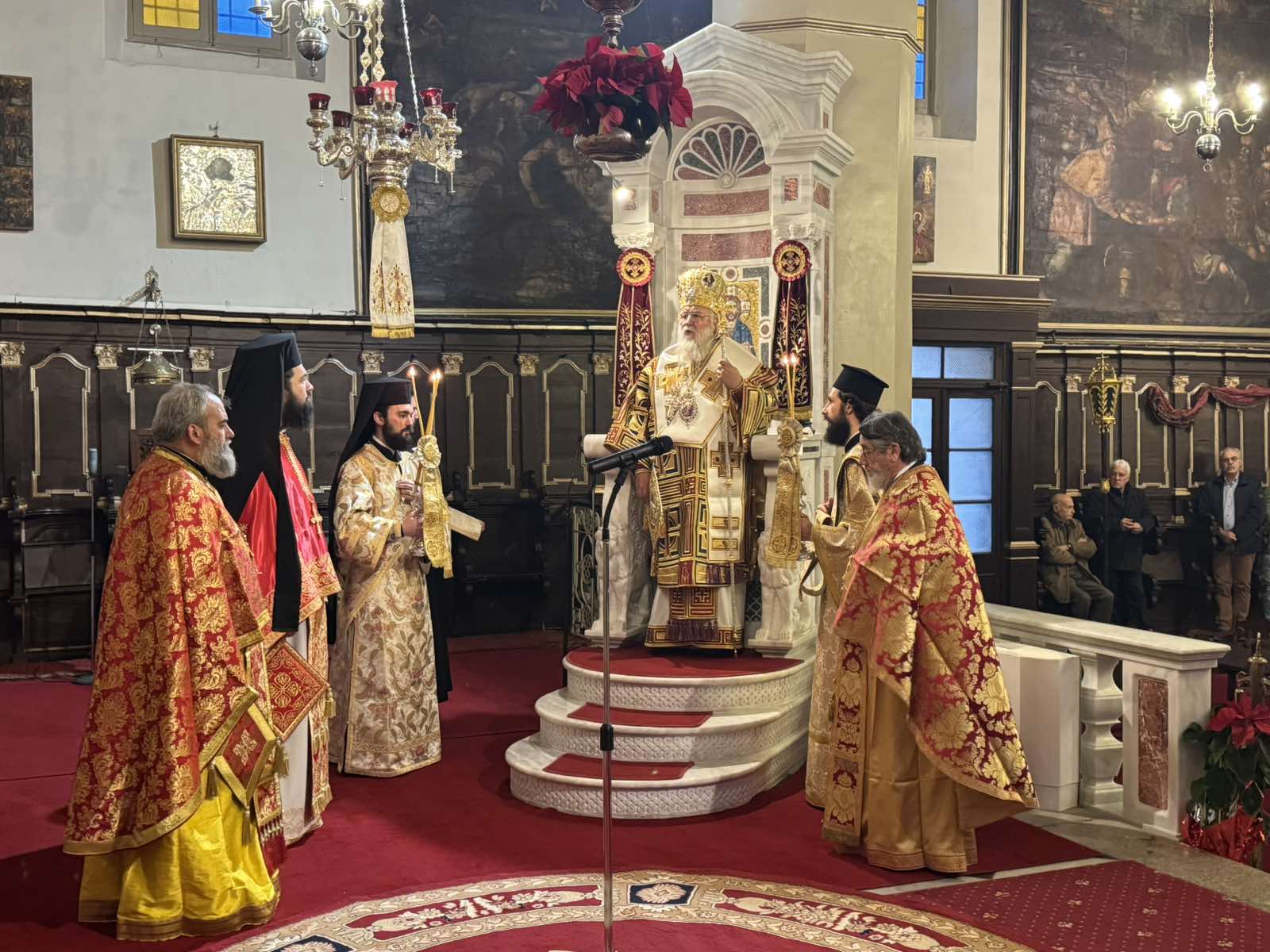 «Τί ἀνταποδώσωμεν τῷ Κυρίῳ περί πάντων ὧν ἀνταπέδωκεν ἡμῖν; Δι’ ἡμᾶς Θεός ἐν ἀνθρώποις. διά τὴν καταφθαρεῖσαν φύσιν ὁ Λόγος σάρξ ἐγένετο και ἐσκήνωσεν ἐν ἡμῖν. πρὸς τοὺς ἀχαρίστους ὁ Εὐεργέτης, πρὸς τοὺς αἰχμαλώτους ὁ Ἐλευθερωτής, πρὸς τούς ἐν σκότει καθημένους ὁ Ἥλιος τῆς Δικαιοσύνης». Ἑορτάζουμε γεγονός μοναδικό, αὐτό πού χώρισε τὴν ἀνθρώπινη ἱστορία σὲ δύο χρονικά μέρη, πρό Χριστοῦ καὶ μετά Χριστόν. Αὐτό ποὺ ἄλλαξε τὴν κατάστασή μας καὶ ἔγινε ἡ ἀφετηρία τῆς νίκης κατά τοῦ ἐσχάτου ἐχθροῦ μας, τοῦ θανάτου. Διότι ἡ Γέννηση τοῦ Χριστοῦ δὲν εἶναι μία ἑορτή ἀνάμεσα στὶς πολλές, μὲ τίς ὁποῖες οἱ ἄνθρωποι προσπαθοῦμε να ἀλλάξουμε τὸν ρυθμό τῆς καθημερινότητός μας, ἀλλά ἀποτελεῖ τὴν εὐκαιρία νὰ ξαναδοῦμε τὴν πορεία μας, νὰ πάρουμε ἀποφάσεις, νὰ βάλουμε ἀρχή μετανοίας στὴ ζωή μας, νὰ ζητήσουμε τὴν κοινωνία μὲ τὸν Εὐεργέτη, τὸν Ἐλευθερωτή, τὸν Ἥλιο τῆς Δικαιοσύνης Χριστό.