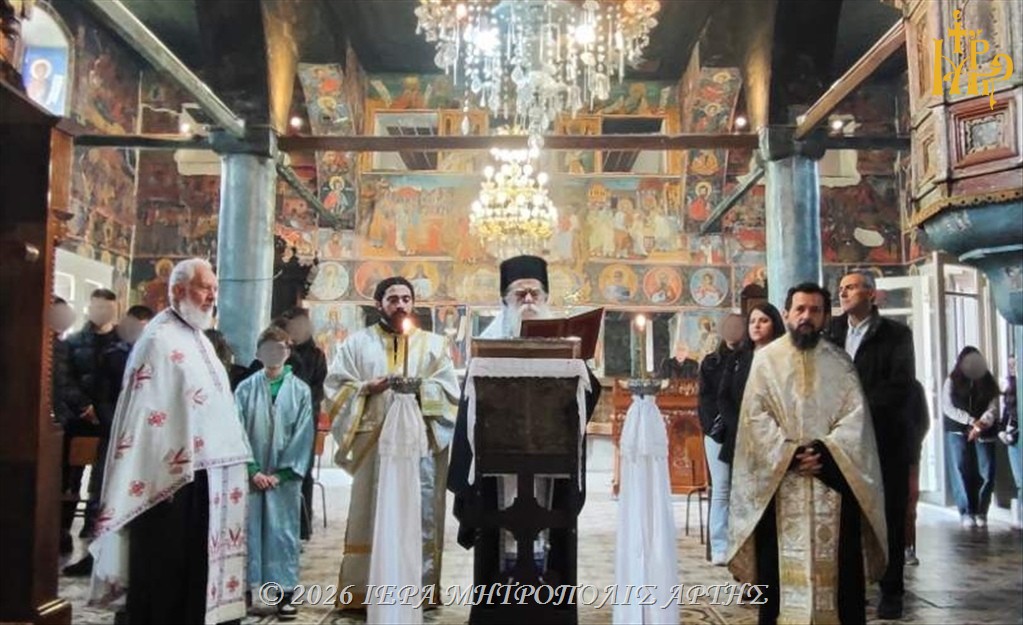 Με κατάνυξη εψάλη την Παρασκευή 20 Μαρτίου 2026 η Δ΄ Στάση των Χαιρετισμών της Θεοτόκου, στον παλαιό Ιερό Ναό Αγίου Γεωργίου Κομποτίου Άρτης, με τη συμμετοχή των μαθητών του Γενικού Λυκείου Κομποτίου, προεξάρχοντος του Σεβασμιωτάτου Μητροπολίτου Άρτης κ. Καλλινίκου.