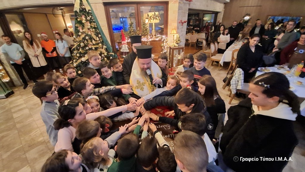 Ο Σεβασμιώτατος τους υποδέχθηκε όλους με πολλή χαρά και αντάλλαξε εορταστικές ευχές. Μετά την ευλογία της βασιλόπιτας προσέφερε δώρα σε όλα τα παιδιά, τα οποία εξέφρασαν τη χαρά και τον ενθουσιασμό τους και ευχαρίστησαν τον Ποιμενάρχη τους. Κατόπιν τα μικρά παιδιά απασχολήθηκαν με δημιουργικό τρόπο, συμμετέχοντας σε χριστουγεννιάτικες δράσεις και παιχνίδια.