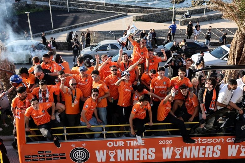 Ο Μιχάλης Μπούσης ήταν όρθιος στην οροφή που πούλμαν και πανηγύριζε εκστασιασμένος με την κούπα στα χέρια, ενώ ο αρχηγός της ομάδας, Βασίλης Λαμπρόπουλος έκλεψε την παράσταση, φορώντας τους πανηγυρισμούς μία μάσκα του… Captain America, μετέδωσε το ΑΠΕ ΜΠΕ.