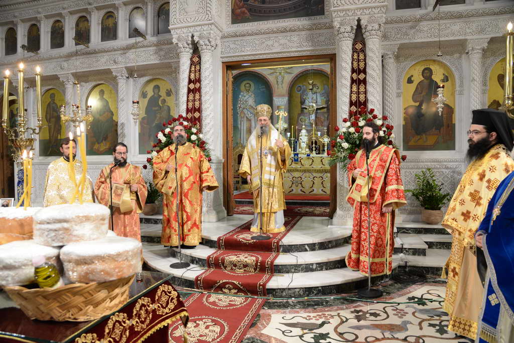 Στον κατάμεστο από Στρατιωτικούς όλων των Στρατιωτικών Σωμάτων και άντρες και γυναίκες των Σωμάτων Ασφαλείας, από προσκυνητές και μαθητές των Αρσακείων Σχολείων και άλλων Σχολείων της πόλεως των Πατρών, ο Σεβασμιώτατος τέλεσε την Θεία Λειτουργία και κήρυξε τον θείο λόγο.