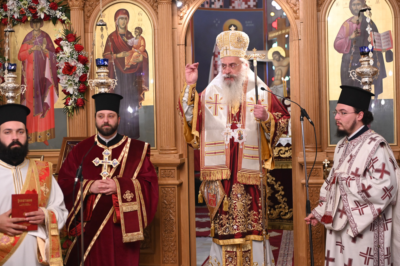 Προ της Απολύσεως, ο Μητροπολίτης, στο πλαίσιο των πρόσφατων διοικητικών αλλαγών και των είκοσι μεταθέσεων κληρικών στις οποίες προέβη, με σκοπό να χτυπά η καμπάνα και να τελείται η Θεία Λειτουργία ακόμη και για έναν μόνο πιστό στα απομακρυσμένα χωριά της Μητροπόλεως, παρουσίασε στην ενορία τον νέο Προϊστάμενο του Ιερού Ναού, Πρωτοπρεσβύτερο π. Κωνσταντίνο Παπαθεοδώρου και του ευχήθηκε ο Θεός να του χαρίζει υγεία και δύναμη για την επιτέλεση των νέων καθηκόντων του. Παράλληλα, ευχαρίστησε και επαίνεσε τον απερχόμενο Προϊστάμενο, Πρεσβύτερο π. Γεώργιο Κωστόγιαννη, καθώς και τους προκατόχους του ιερείς, για τη μέχρι