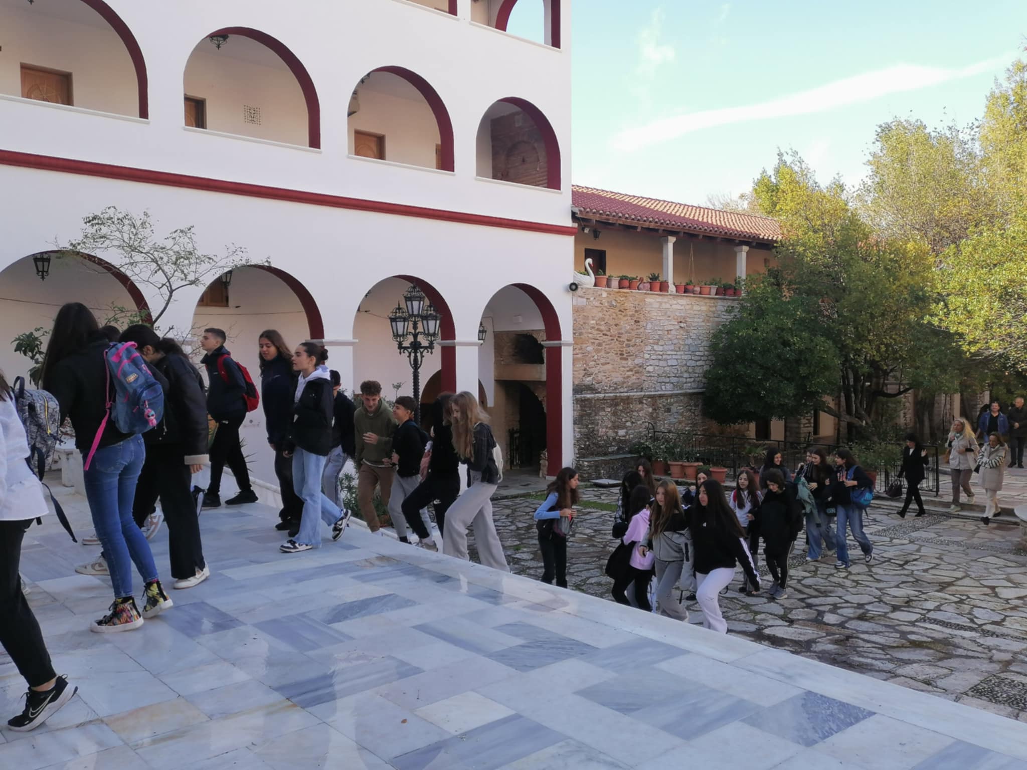 Κατά τη διάρκεια της επίσκεψής τους, οι μαθητές ξεναγήθηκαν στους χώρους του Διορθοδόξου Κέντρου και ενημερώθηκαν για το πολυετές και πολυδιάστατο έργο του.