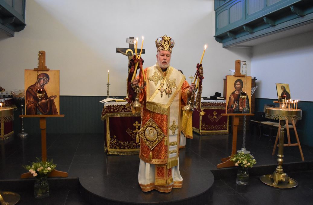 Της Πανηγυρικής Θείας Λειτουργίας προεξήρχε ο Σεβασμιώτατος Μητροπολίτης Βελγίου και Έξαρχος Κάτω Χωρών και Λουξεμβούργου κ. Αθηναγόρας, συμπαραστατούμενος από τον Ιερατικό Προϊστάμενο του Ναού π. Αλέξανδρο Κουφουδάκη και τον Διάκονο π. Παντελεήμονα Μπακάλη. Το ιερό αναλόγιο κόσμησαν οι ψάλτες της ενορίας με τη συμμετοχή και άλλων ιεροψαλτών από διάφορες περιοχές της Ολλανδίας.